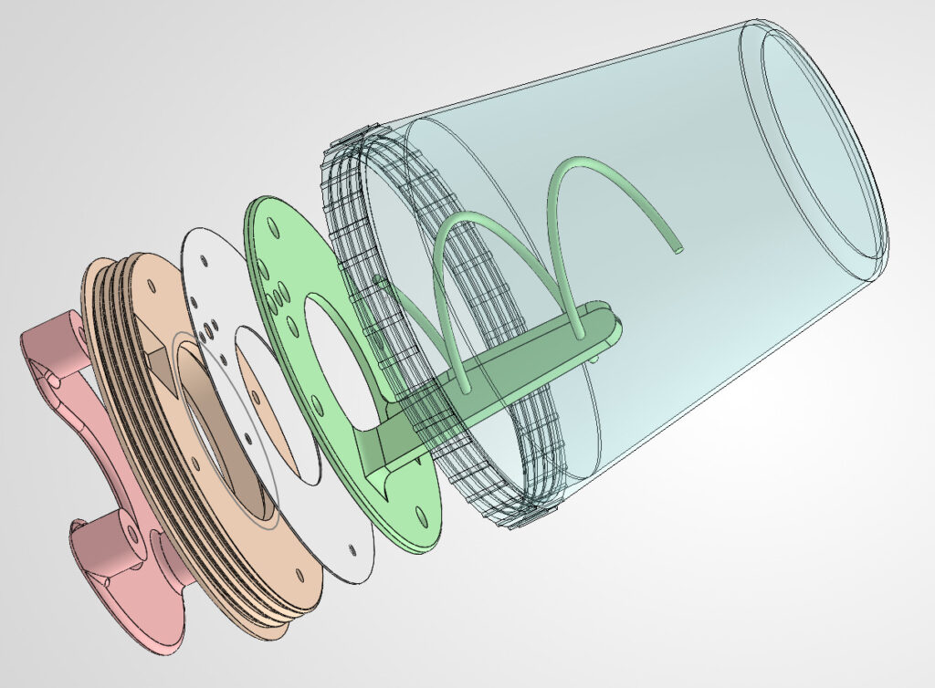 Sind alle 3D-Druck Bauteile erstellt und vorbereitet, die Helix-Wendel gebogen und zugeschnitten, erfolgt nun der Zusammenbau.
