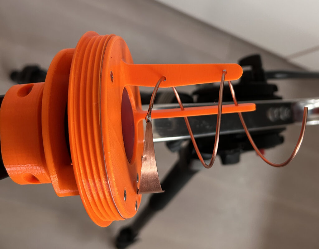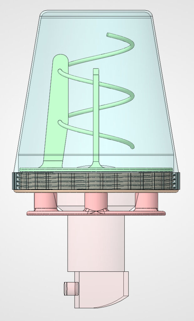 Die von mir verwendete Helix-Antenne für den QO-100 Uplink ist ein Nachbau der Ice Cone Feed 2.1 Helix von DC8PAT. Die Bauform wurde von mir komplett neu mit der Maker-Version von Solidworks gezeichnet.